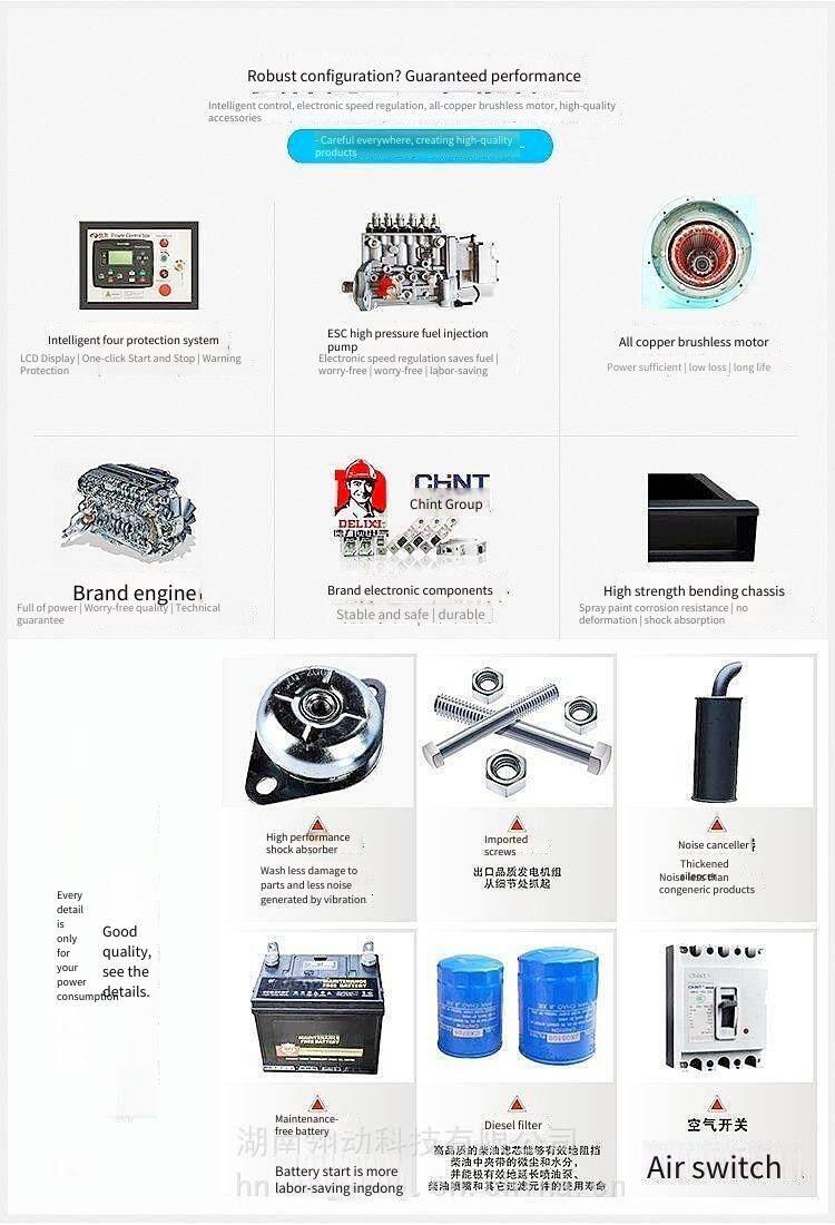 The "Shangchai Brand" diesel generating sets can be designed with functions such as automatic parallel operation, self - starting and self - switching according to user requirements. They can also be designed as bottom - tank units, dust - proof and silent units, mobile power stations, etc. Shangchai generating sets are reliable in operation, beautiful in appearance, compact in structure, and good in economic performance. Moreover, the generator voltage regulator features high voltage regulation accuracy, good dynamic performance, and long service life. They are widely used in many fields such as communication, mining, railways, hospitals, road construction, industrial and agricultural production, as well as workboats, fishing boats, cargo ships, etc. They are also suitable for generator rental companies or rental, and are the choice for a large number of users.