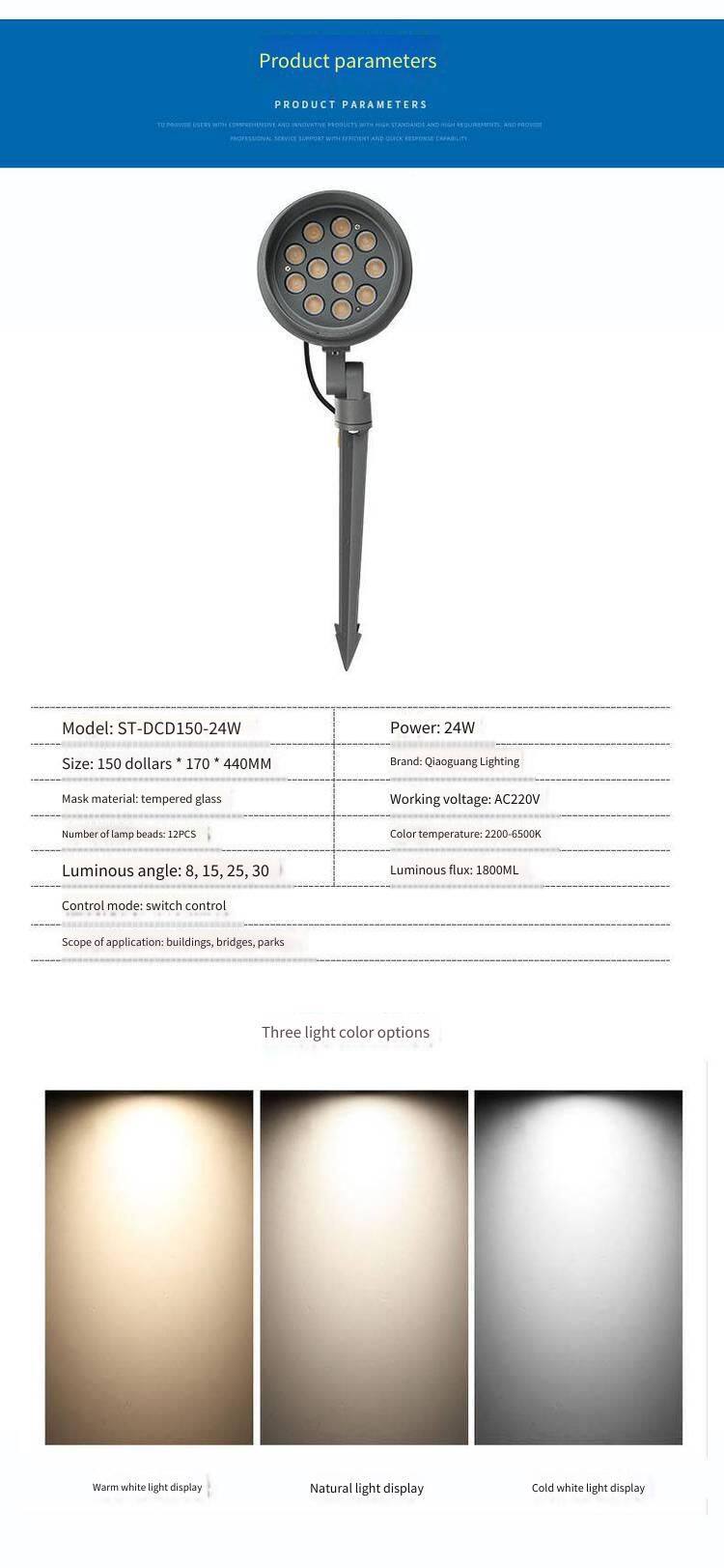 24w Led Ground-inserted Lamp, Landscape Lighting Projector for Courtyards, Villas and Parks, Colorful Tree Projector Lamp
