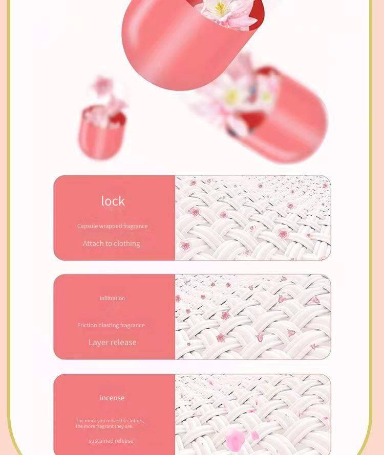 Long-lasting fragrance: Feng Sao Perfume Laundry Detergent is known for its long-lasting fragrance. Its scent is fresh and natural, and the clothes can retain the fragrance for a long time after washing. In addition, the fragrance is not only long-lasting but also releases a charming aroma during the washing process, enhancing the wearer's sense of pleasure.