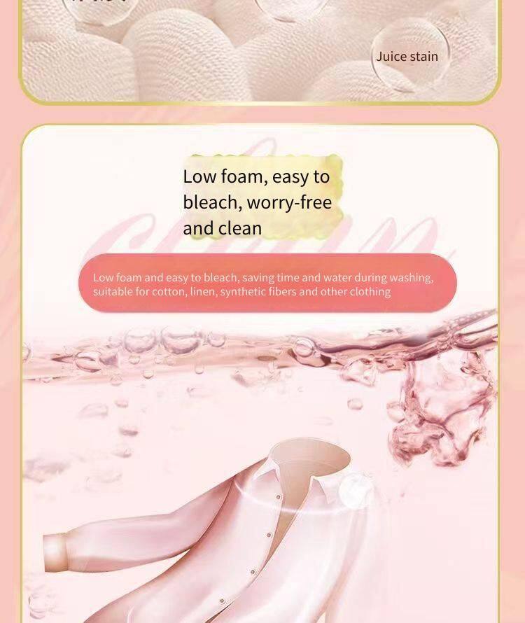 7. Low-foaming and easy to rinse: Fengsao Perfume Laundry Detergent uses a low-foaming formula, which is easy to rinse and saves water and electricity. For example, the low-foaming formula of Fengsao Laundry Detergent makes rinsing easier, saving time and water resources.
