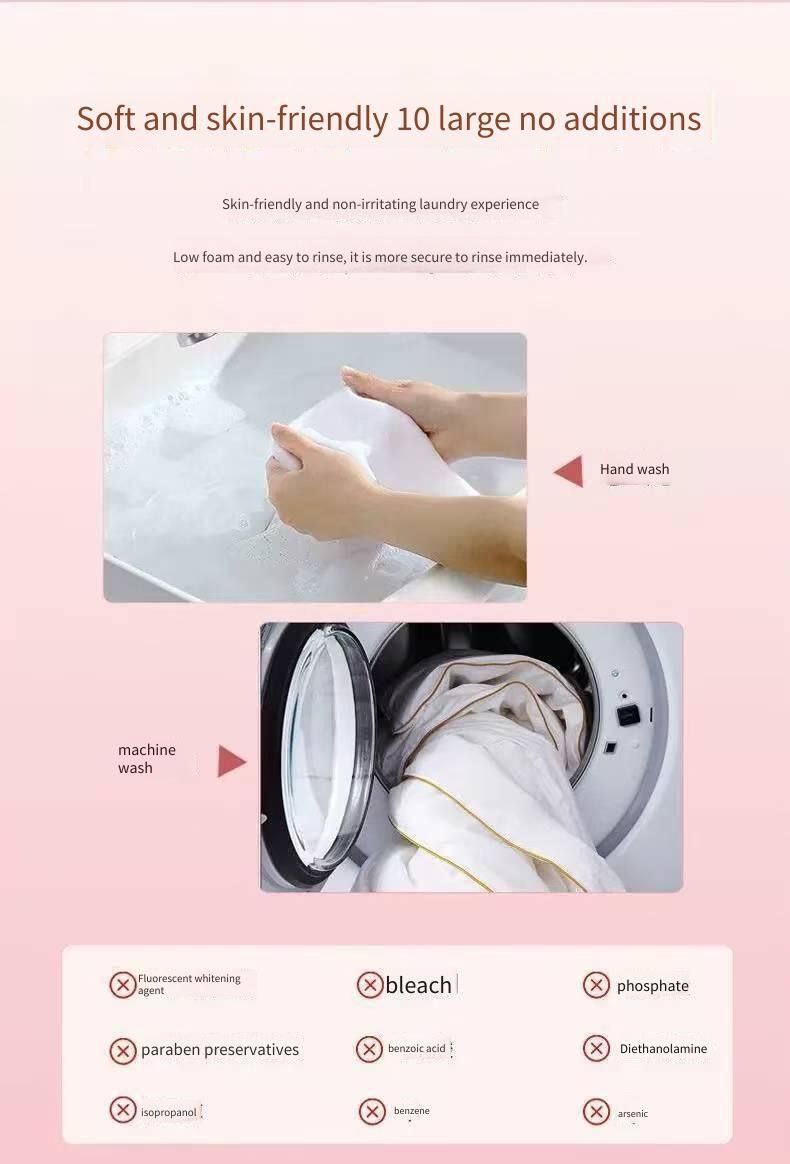 4. Gentle on hands: The formula of Fengsao Laundry Detergent is gentle on the skin and does not hurt hands. It is suitable for both hand washing and machine washing. For example, Fengsao Laundry Detergent uses a gentle formula that is non-irritating to the skin and suitable for sensitive skin.