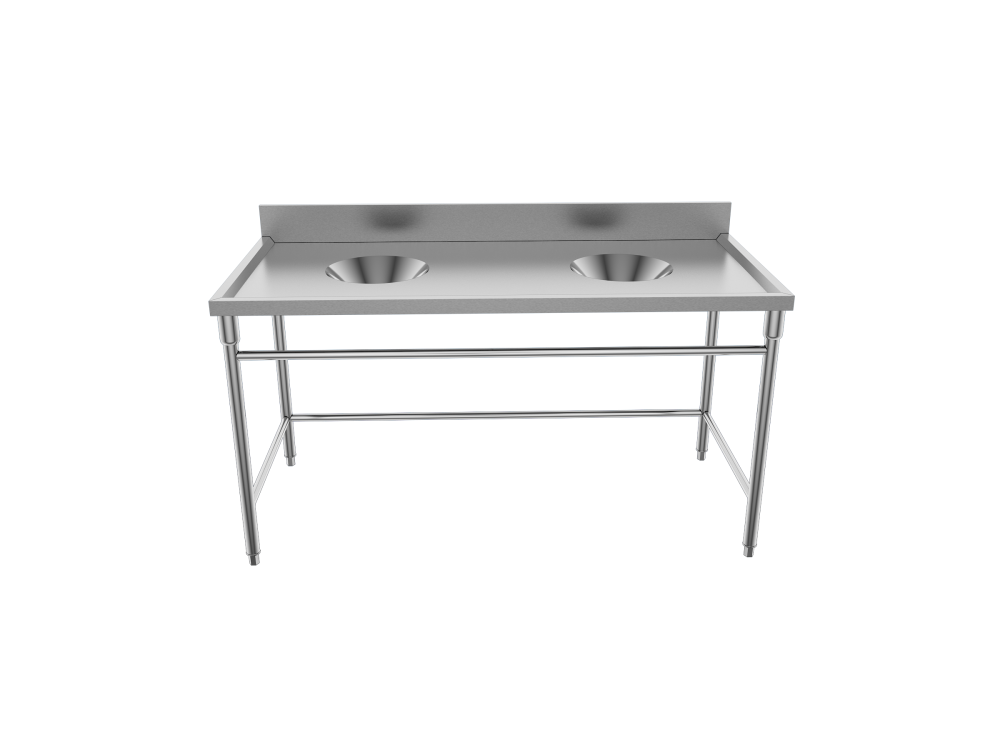 Q: What materials are used in the construction to ensure hygiene? A: The workbench is primarily made from stainless steel, which is non-porous, corrosion-resistant, and easy to clean, making it ideal for meat processing environments.
