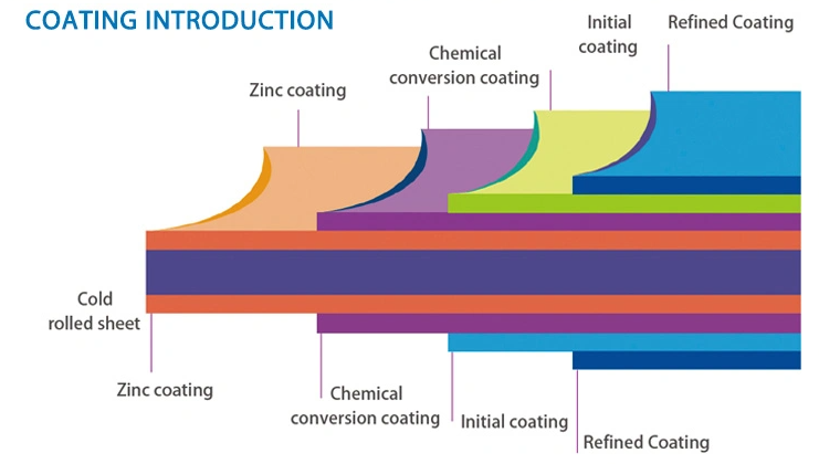 1.Hot-dip galvanized color coated steel sheet(prepainted galvanized steel sheet) The product obtained by coating an organic coating on a hot-dip galvanized steel sheet is a hot-dip galvanized color-coated plate. In addition to the protective effect of zinc, the hot-dip galvanized color-coated sheet also protects against rust and has a longer service life than hot-dip galvanized sheet.