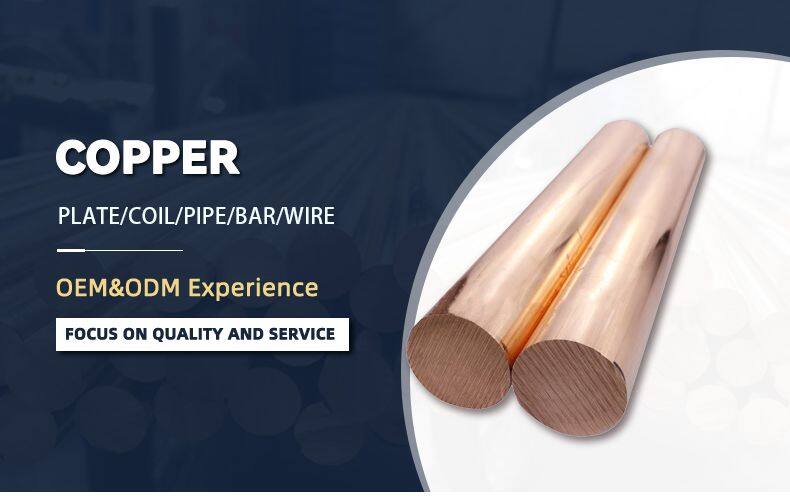 Copper rod is a type of non-ferrous metal processing rod with good processing performance and high conductivity. Mainly divided into brass rods (copper zinc alloy, cheaper) and red copper rods (higher copper content). Characteristics: High purity,fine tissue,very low oxygen content.No pores,trachoma,loose,excellent electrical conductivity,high surface accuracy of the electroetched mold, heat treatment electrode is non-directional,suitable for precision machining,with good thermal cconductance,workability,ductility,corrosion resistance,etc.