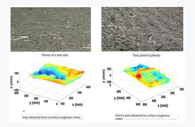 Two farmlands with different surface states were measured respectively. The photos of the test points and the obtained initial three - dimensional surface data results are shown in the following figure.