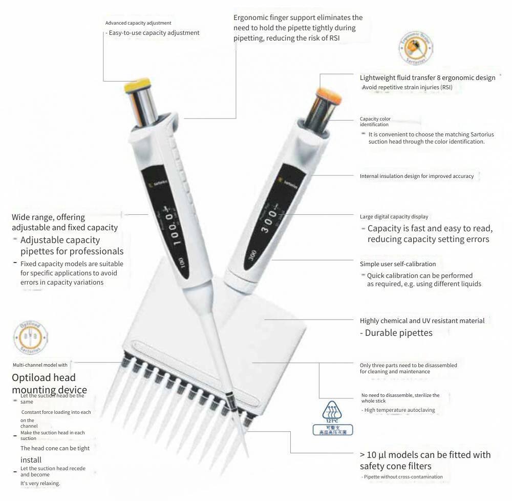Sartorius Tacta, Mline, Proline Manual Pipettes, Picus Electric Pipettes, Single-channel and Multi-channel