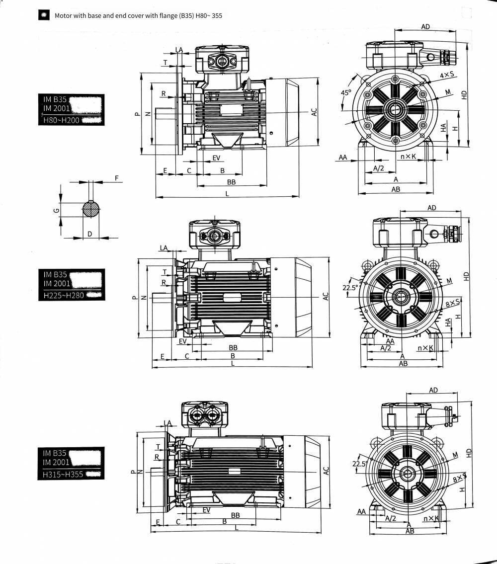 The new generation of YBX3 series high-efficiency flameproof three-phase asynchronous motors (H80-355) comply with the Chinese explosion-proof standards GB 3836.1 and GB3536.2. The motor performance meets the Chinese explosion-proof motor industry standard JB/T12628-2016. The efficiency meets the Class 3 energy efficiency in GB18613-2020. The installation dimensions comply with the YBX3 series industry standard, as well as the IEC standards and national standards. Customers can achieve a quick switch.