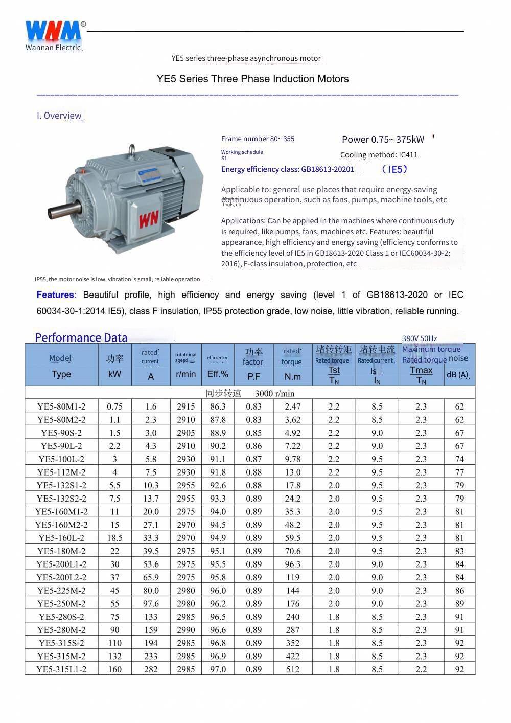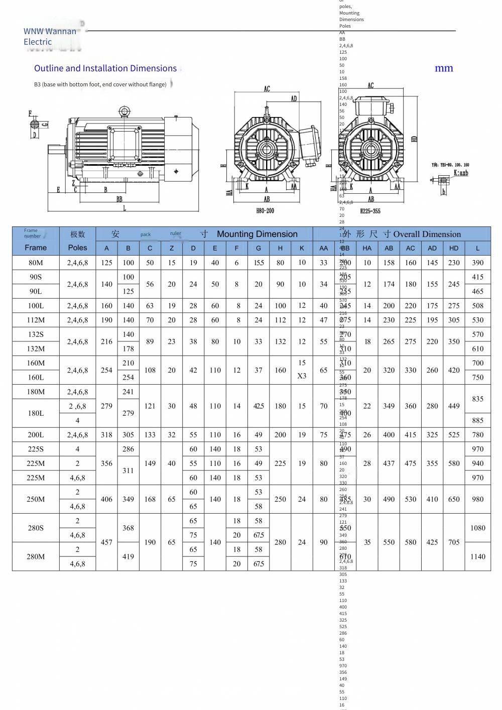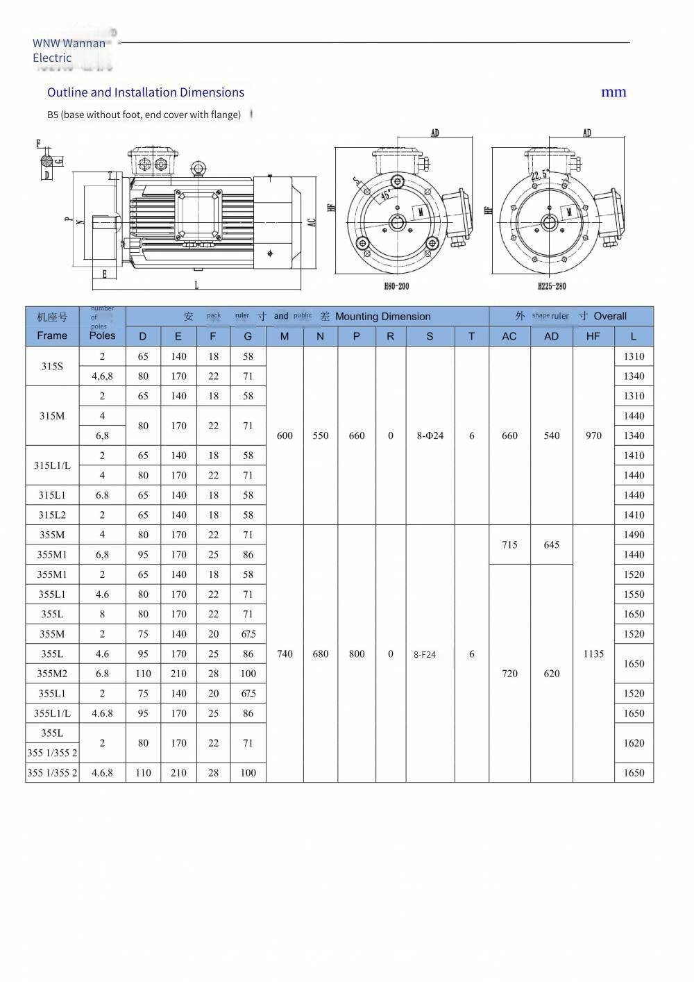 Wannan Motor, Ye5 Series, National Standard Level 1, Ye5-355l1 L-8/185kw 200kw/660v/b3/ip65/b3/b35/b5, Customization Available