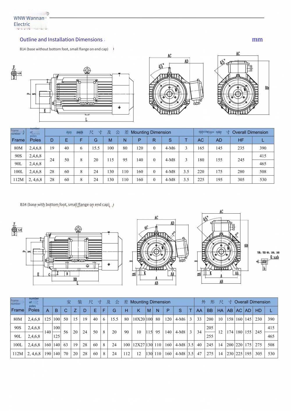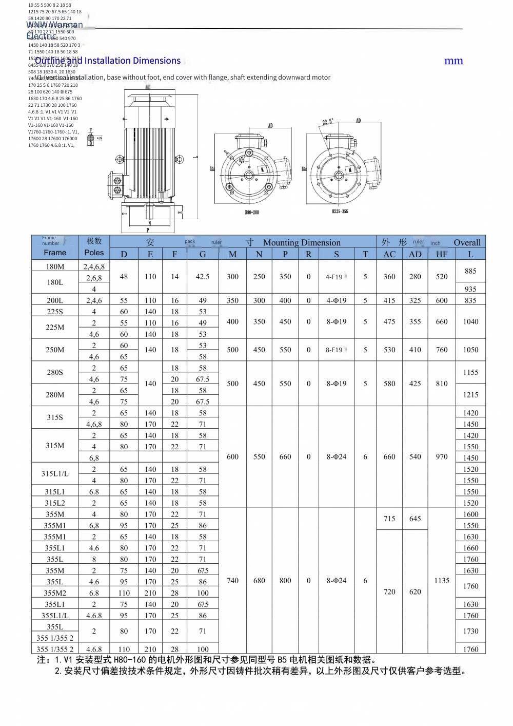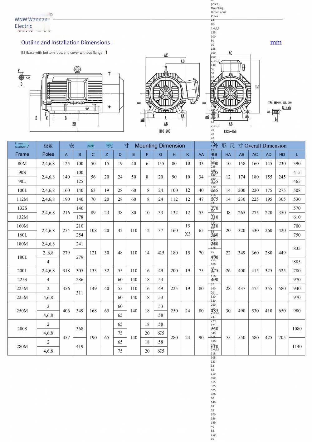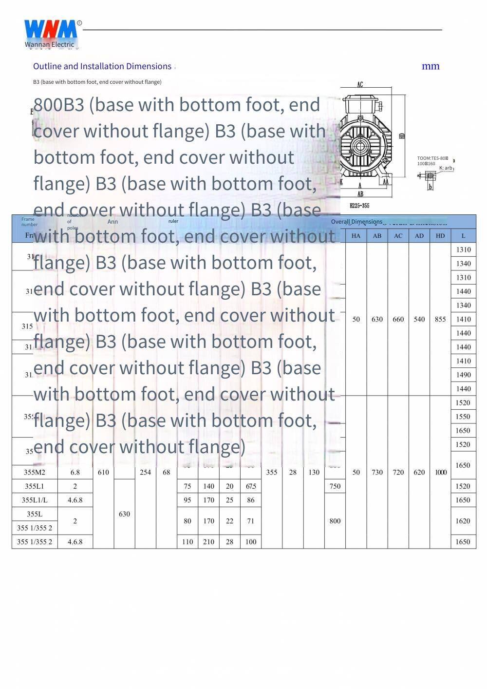 National Standard Class 1 of Ye5 Series, Wannan Electric Motor, Ye5-315s M-8/55kw 75kw/660v/b3/ip65/b3/b35/b5, Customization Available