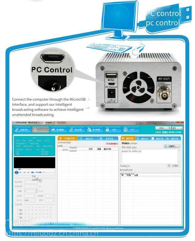 Supply the new Nile T15B 15W FM transmitter with Bluetooth function, PC control, USB flash drive playback, and high-fidelity stereo sound
