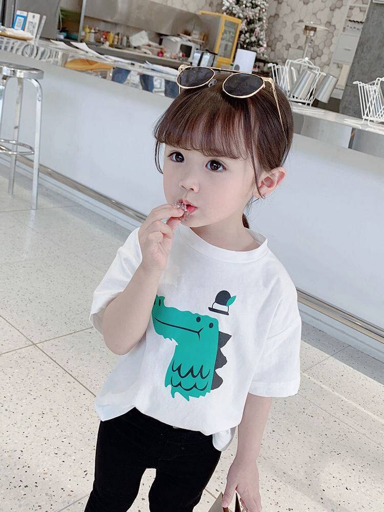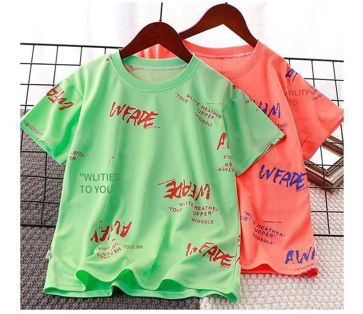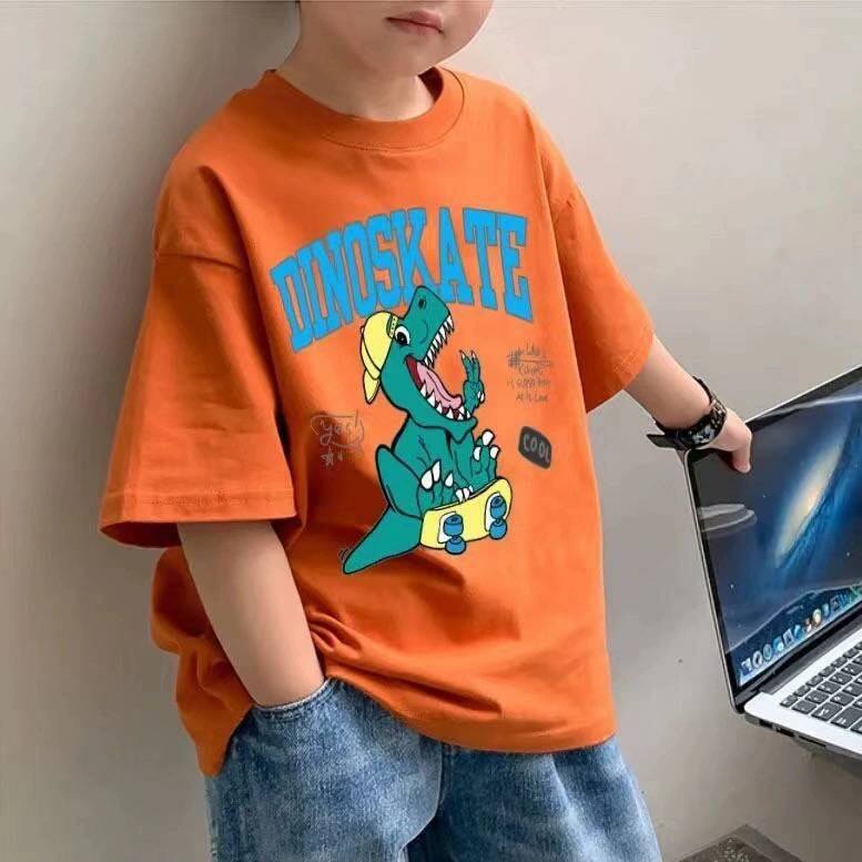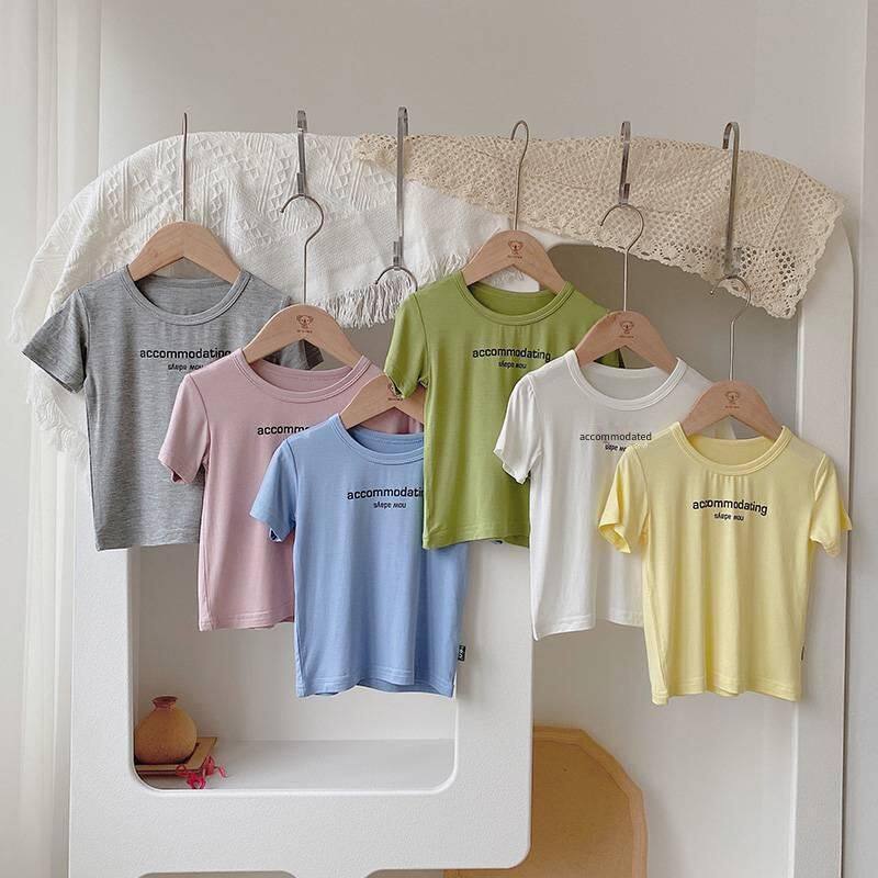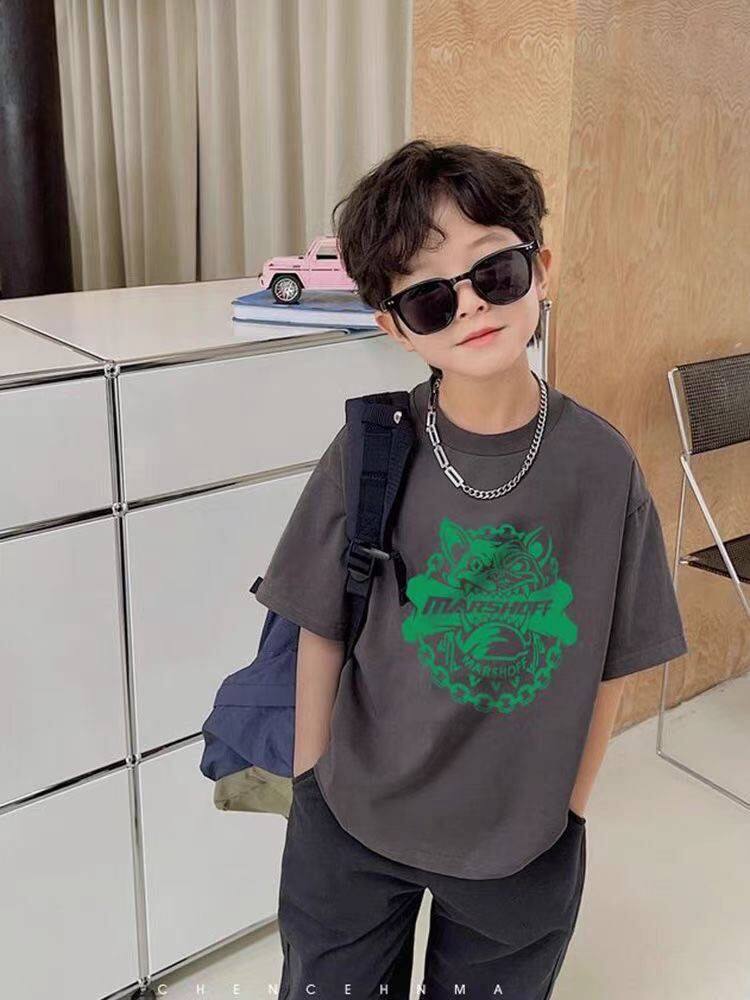 2024 Summer Kids' T-shirts, Korean Style With Letter and Cartoon Prints, Short-sleeved, Round-neck, Casual and Loose-fit Tops for Boys and Girls