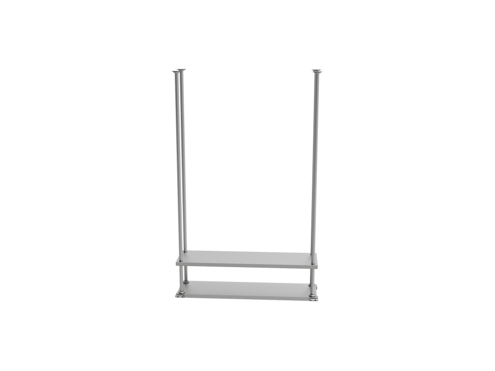 A: Each shelf supports up to 50 kg, making it suitable for a variety of retail items like clothing or accessories. -