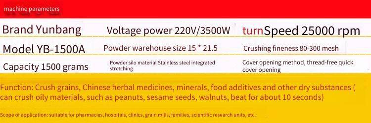 Upgraded 1500g Chinese Herbal Medicine Grinder, Suitable for Both Household and Commercial Use, Ultra-fine Powder Grinder and Mill
