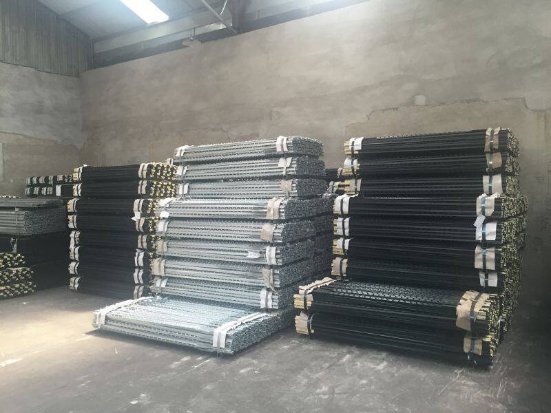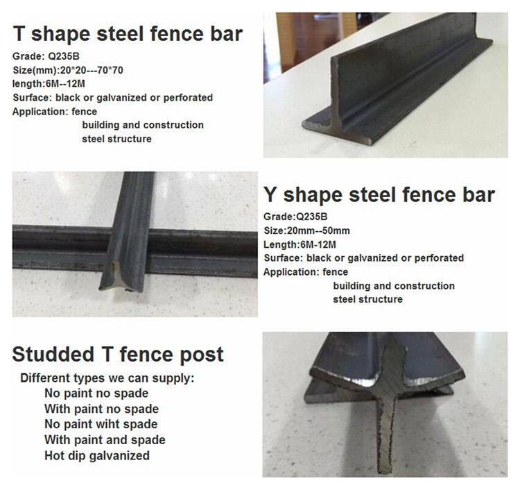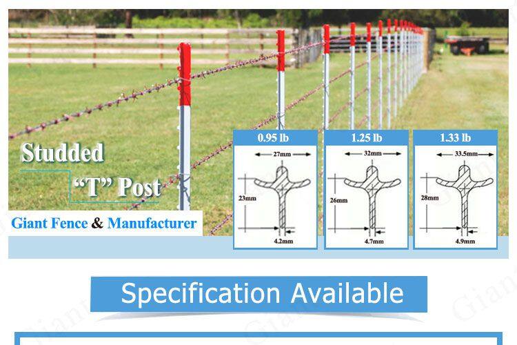 needs,including agricultural, garden, and security fences. The T-shaped cross-section and studs along the spine prevent wire slippage.They typically weigh 1.01, 1.25, or 1.33 pounds per foot and have a white painted tip for visibility and safety during installation.