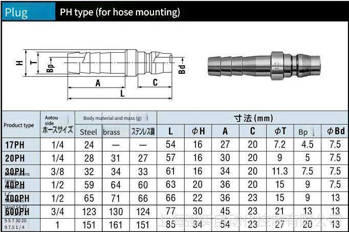 Nitto 20PH Imported nitto kohki Nitto Seiko Quick Coupling Plug for 1/4 Hose Installation, Detailed Dimensions:
