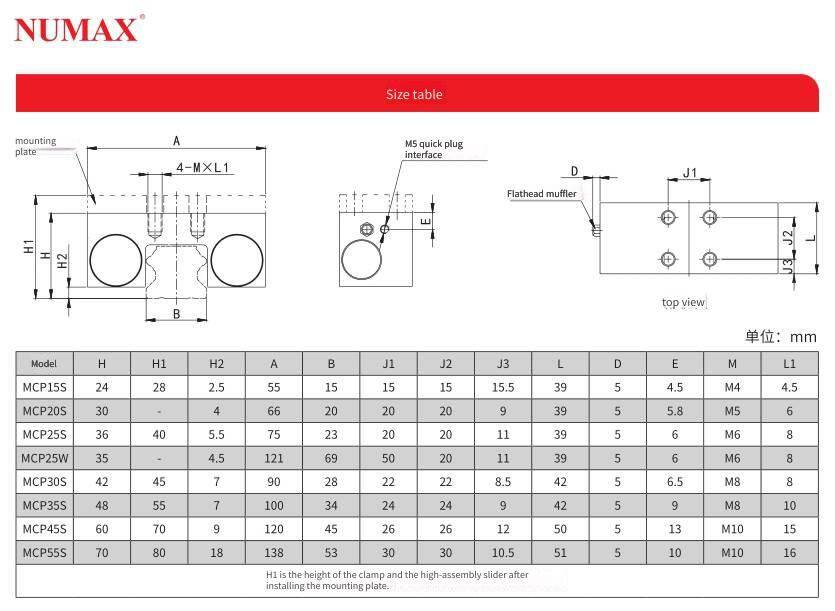 Air pressure control type rail lock MCP55S, domestic NUMAX clamp, NO normally open type rail brake. Installation introduction: