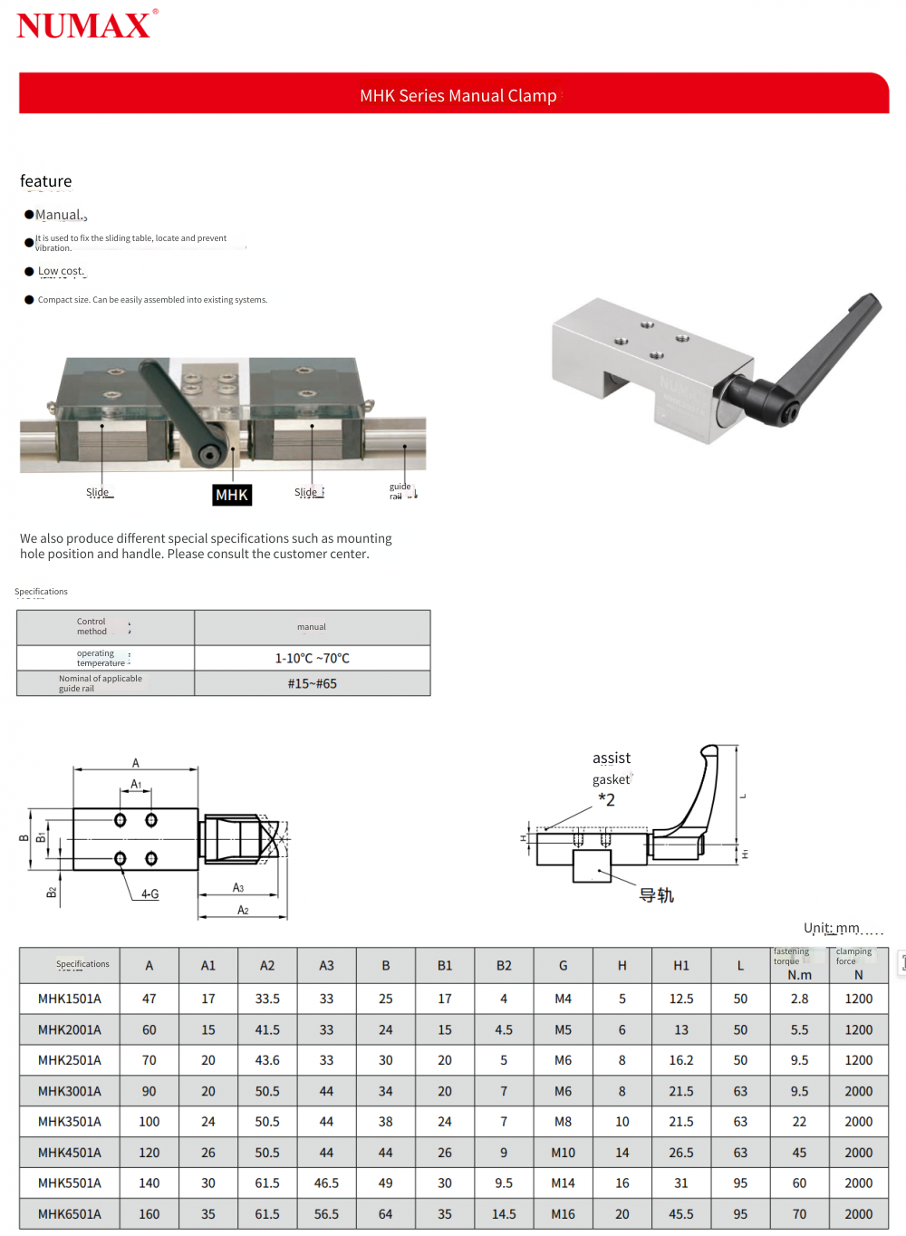 Domestic Manual Clamping Device Mhk3501a Linear Rail Clamping Pliers Manual Control Type Rail Lock