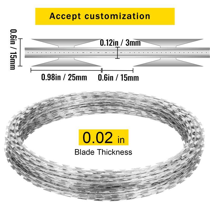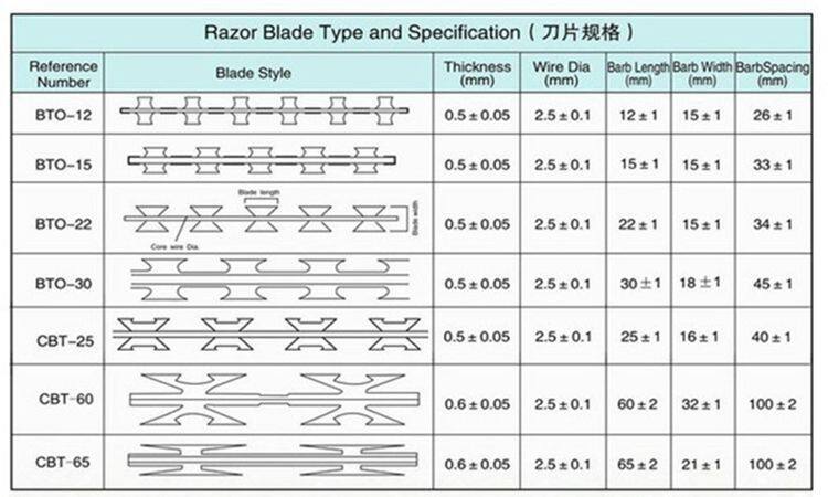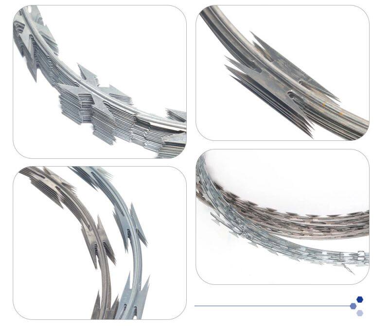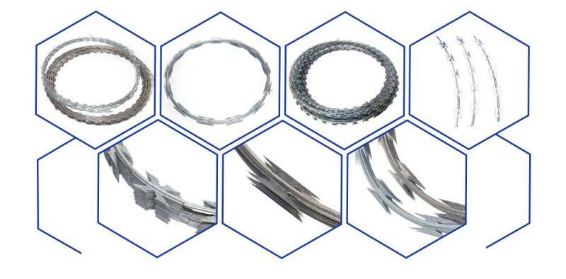 coils. A variety of blade type and sizes are for the choice of our customers. Standard materials for razor wire are either