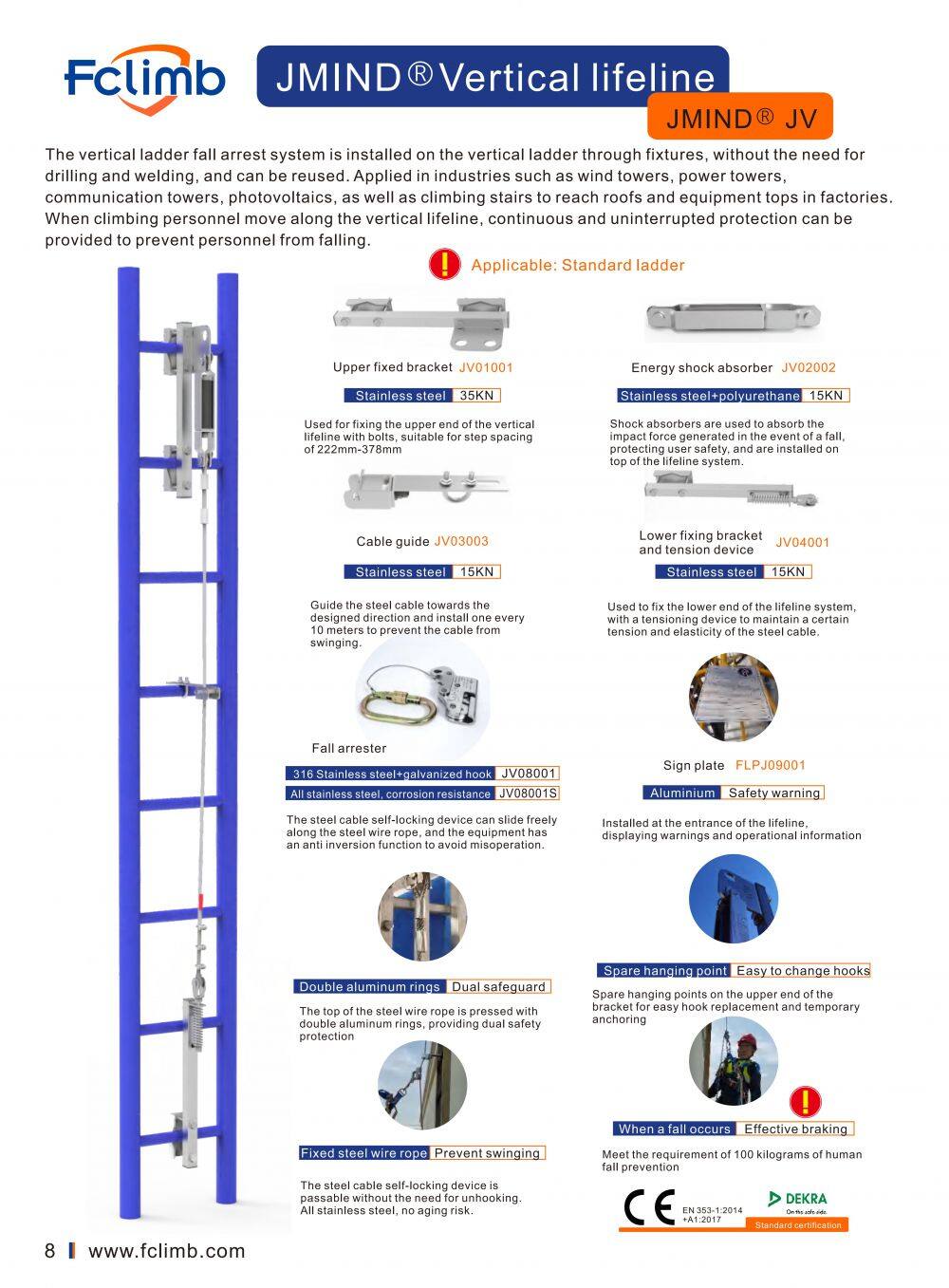 JV type vertical lifeline system, fully stainess steel,it used for fall arrest purpose ,widely applicated on the telecom tower, lattice tower ,3-legged tower, 4-legged tower, rooftop pole, straight ladder ,electricity tower , etc.