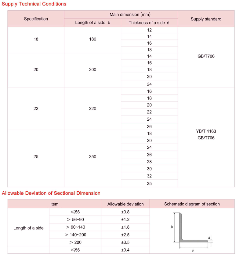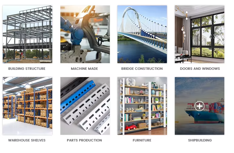 Angle steel, carbon structural steel for construction, is simple secion steel. When used, it is required to have beter weldability, plastic deformation performance and certtain mechanical strength. According to the diferent needs of structure, a variety of stress components can be made, and it can also be used as a connecting member between components. It is widely used in all kinds of structure of architecture and engineering, such as housing beams, bridges, transmission towers, hoisting and transporting machinery, ships, industrial furaces, reaction towers, container shelves, cable trench suppors, power piping, installation of bus structure, and warehouse shelves.