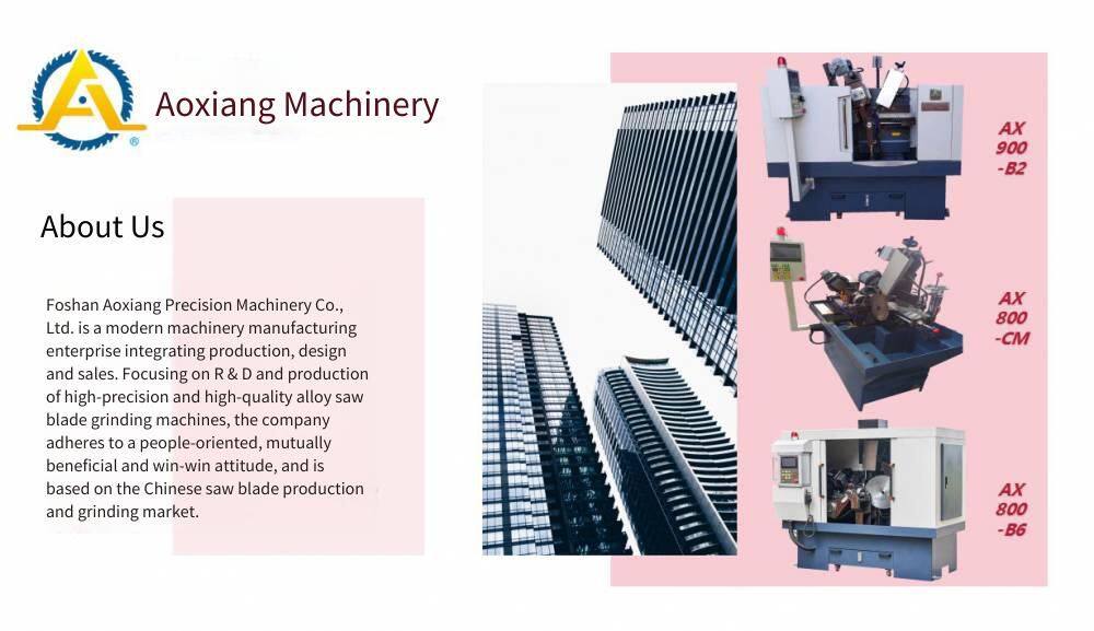 After long-term production practice and combining with the actual situation of advanced German carbide saw blade tooth grinding machines, Foshan Aoxiang Precision Machinery Co., Ltd. has successfully developed a new generation of carbide saw blade tooth grinding machines: AX1600—B5 model. It not only has the advantages of German machines, but also adds a user-friendly touch screen design according to the actual situation of our country, making the operation extremely simple. And the data of the PLC control system is fully displayed on the screen, making fault troubleshooting faster and easier.