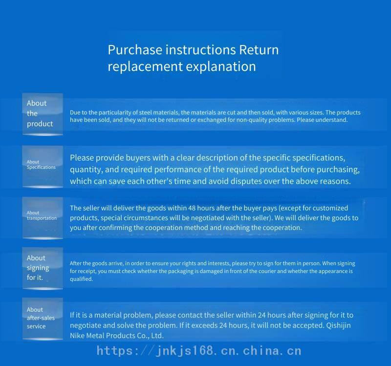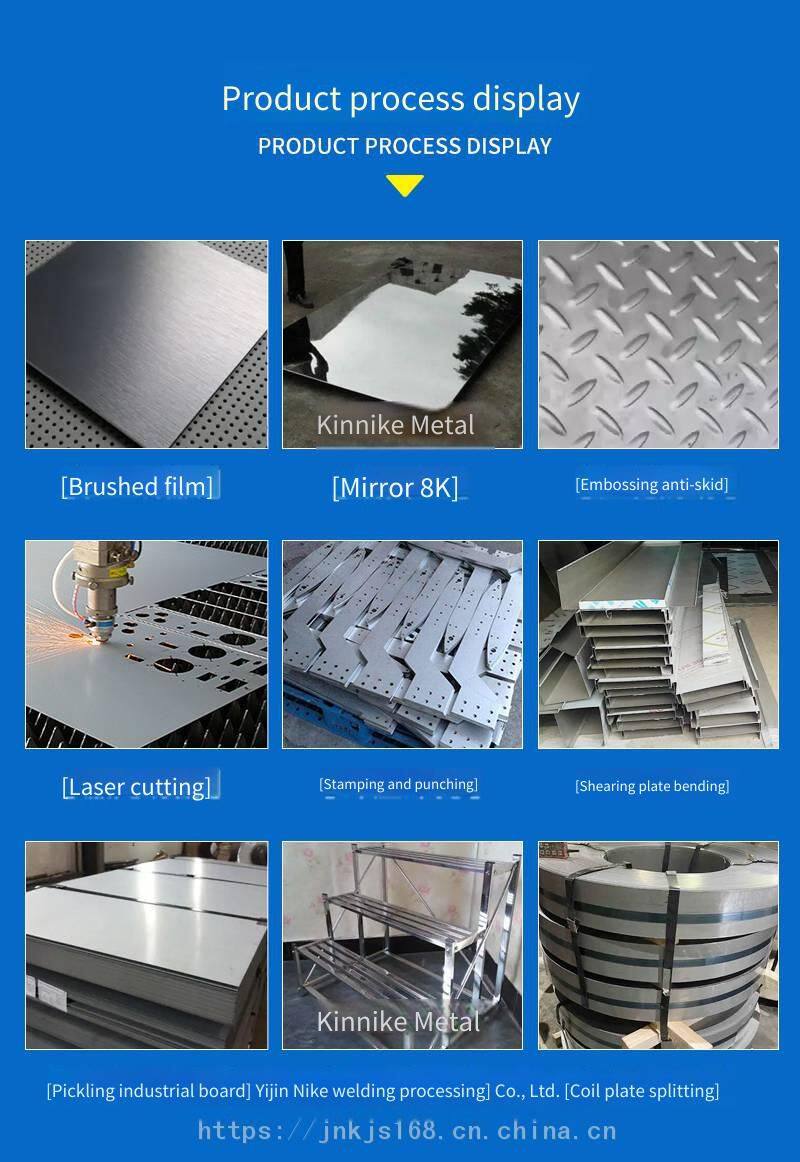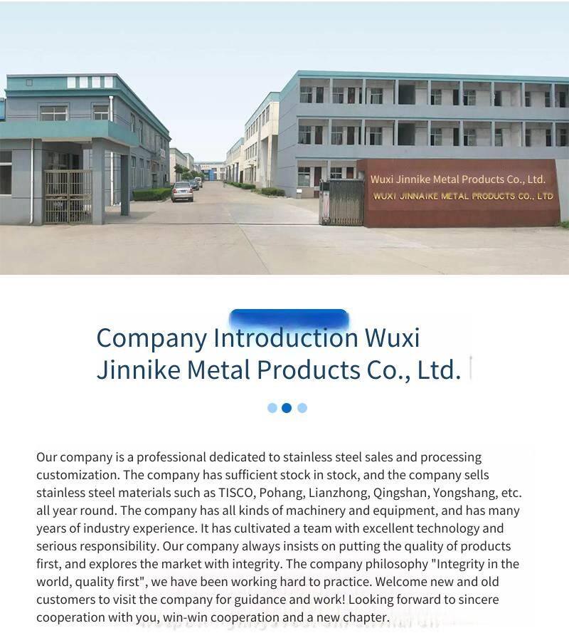 Wuxi Jinnike Metal Products Co., Ltd. is a comprehensive enterprise specializing in the production, processing, fabrication, and installation of stainless steel products. Our company mainly produces stainless steel plates, stainless steel tubes, stainless steel profiles (angle steel, channel steel, flat steel, hexagonal bars, square steel), and stainless steel bars. We have a complete range of specifications and can customize non - standard products. The minimum order quantity is 500 kilograms. We have a wide range of materials. We provide loading and delivery services for customers during holidays. The concurrent projects of the company: Processing categories: plate shearing, bending, grooving, punching, rounding, water jet cutting, welding, special - shaped processing, stainless steel flagpoles, etc.