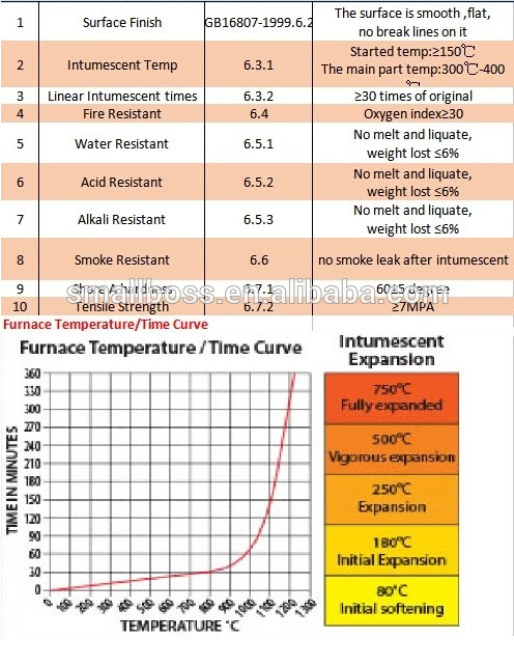 The seal will start to expand at the temperature 260 celsius degress, and the main part expand temperature is 370 degree, and it can expand more than 6 times.