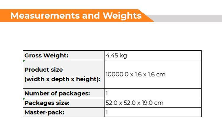 Product size (width x depth x height): 10000.0 x 1.6 x 1.6 cm