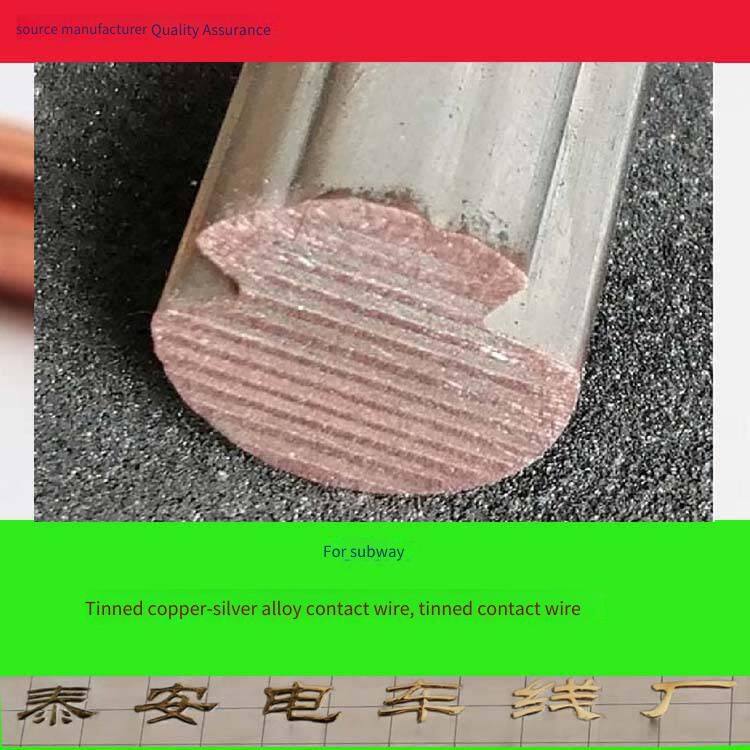 The flat-bottom tin-plated copper-silver alloy contact wire is a high-end product specially designed and produced for subways. This product is improved on the basis of the original copper-silver alloy contact wire. It is changed from the original round bottom to a flat bottom, which increases the bottom contact area and has a better effect of contact power taking. The surface of the wire is treated with tin plating, which increases the corrosion resistance of the wire. This product has been popularized and applied in the domestic subway industry.
