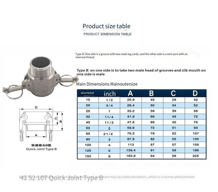 Stainless Steel Quick Connector Type b, Cast for Engineering Vehicles and Tank Trucks, Quick Installation and Connection Ferrule Threaded Connector for Pipelines