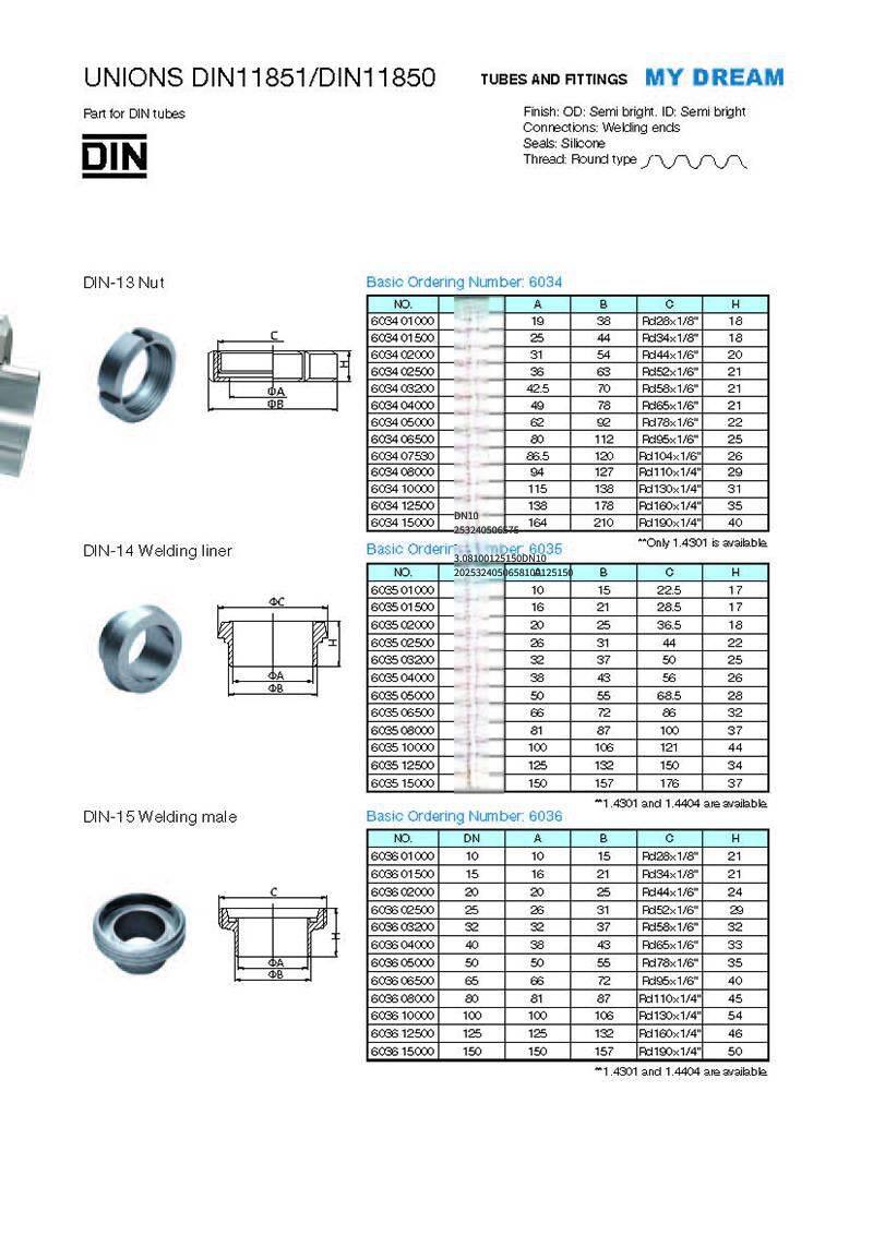 Field my Dream 316l Stainless Steel Union, German Standard Din 11850/11851 Dairy Fittings