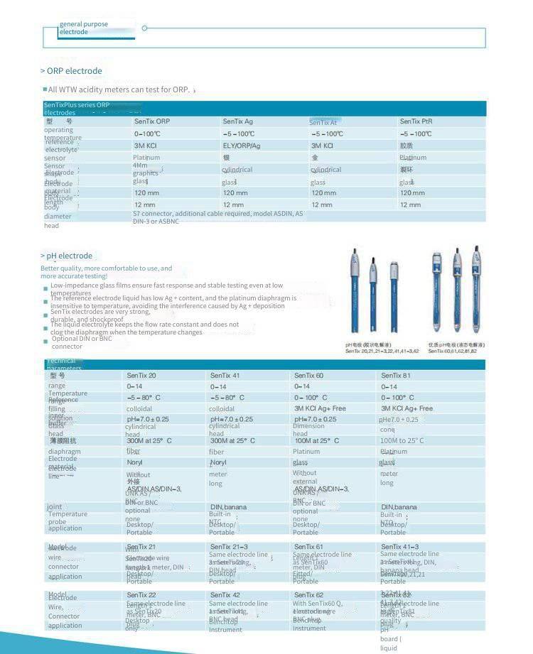 The SenTix series electrodes of German WTW are used in conjunction with portable pH meters and laboratory pH meters, meeting the detection requirements of different industries and different customers.