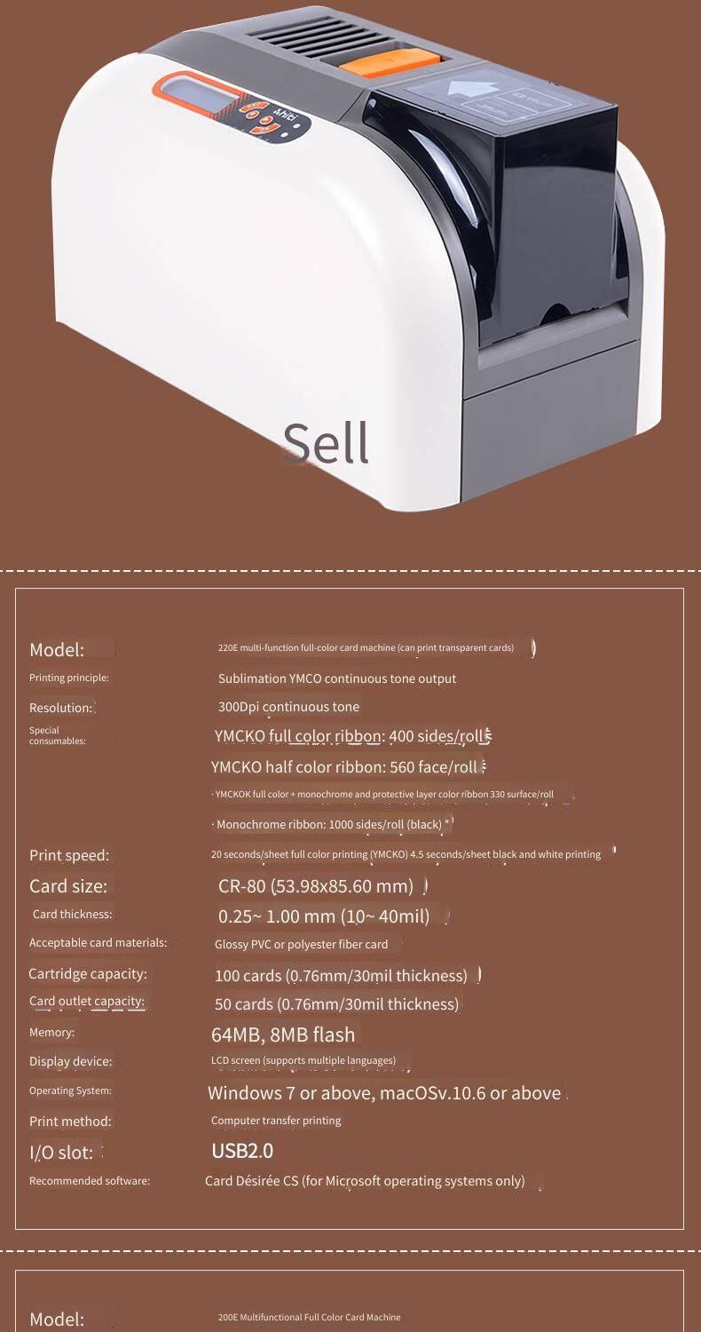 | Model: CS-220e Transparent Full-color Double-sided Card Printer | Display device: LCD screen (supports multiple languages) |