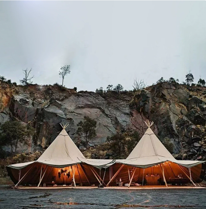 Outdoor Large Luxury Glamping Wooden Pole Tipi Tent for Pyramid Safari Tent
