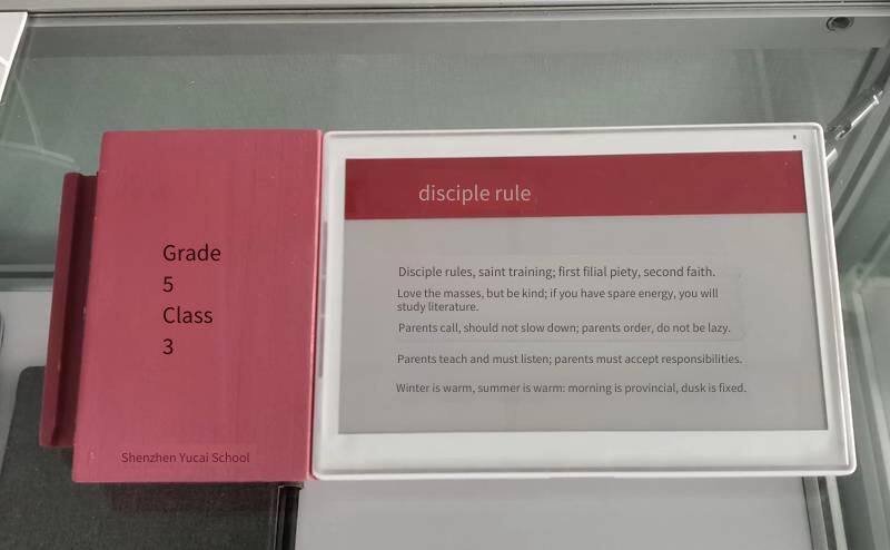 Guohua E-ink class sign. The electronic paper class sign uses a three-color electronic ink screen for single-sided display. Based on Bluetooth 5.0/WIFI/LORA IoT technology, it enables the linked display of multiple doorplates, conference signs, class signs, bedside signs, and bulletin boards in large parks. It is a better choice for green display in a paperless office environment.