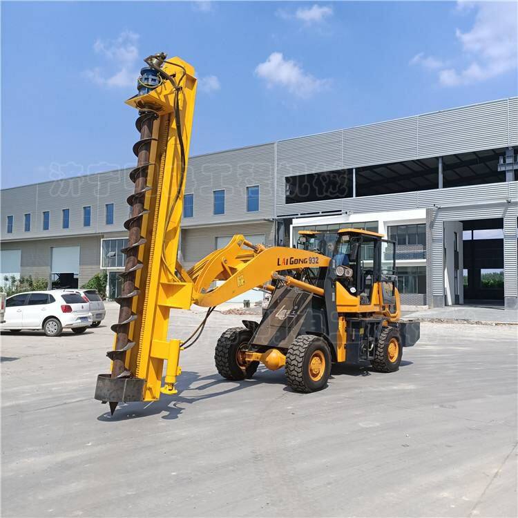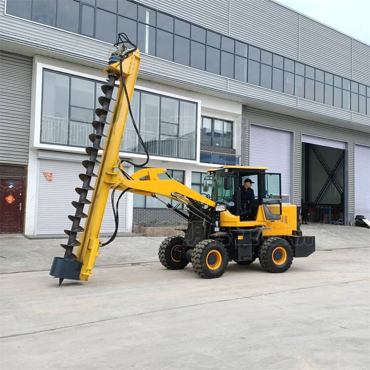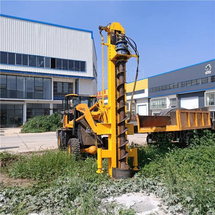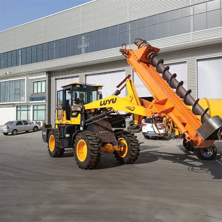 The product is suitable for drilling operations in the projects of digging pits for utility poles, street lamp poles, photovoltaic brackets, and piling for civil houses. One vehicle can be used for multiple purposes. It uses a loader as the carrier and adopts front-mounted drilling without destroying the transportation function of the loader.