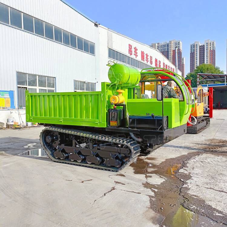 1. The crawler transport dump truck can adapt to complex and harsh road conditions such as paddy fields, swamps, muddy field roads, rugged mountain roads, soft grasslands, deserts, slippery ice surfaces and snow