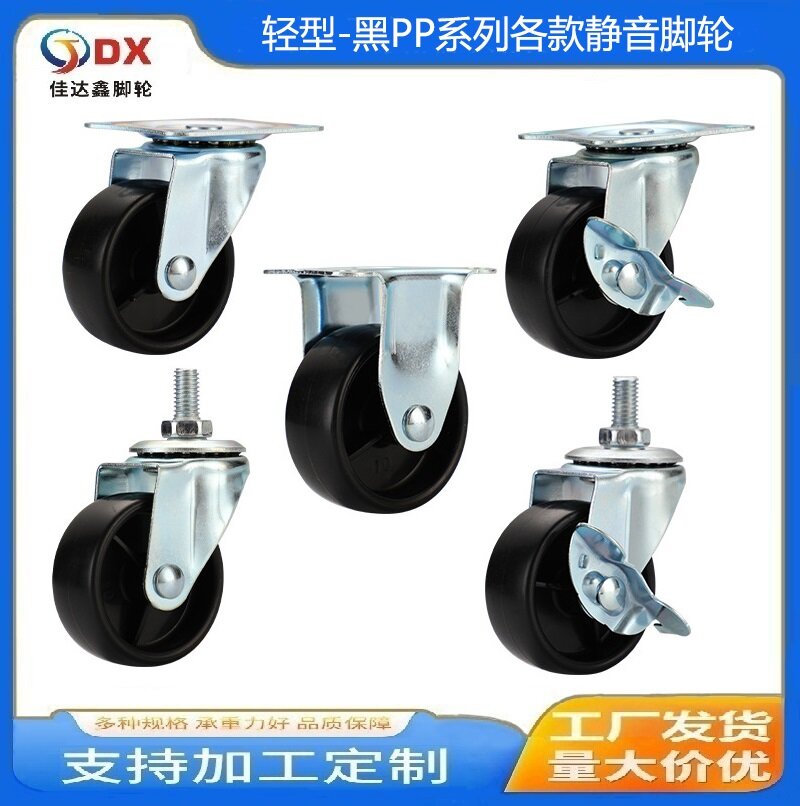 Casters 1.5-Inch 2-Inch 2.5-Inch 3-Inch Black PP Flat Universal Wheel Fixed Edge Brake Screw Stroller Wheels Wholesale