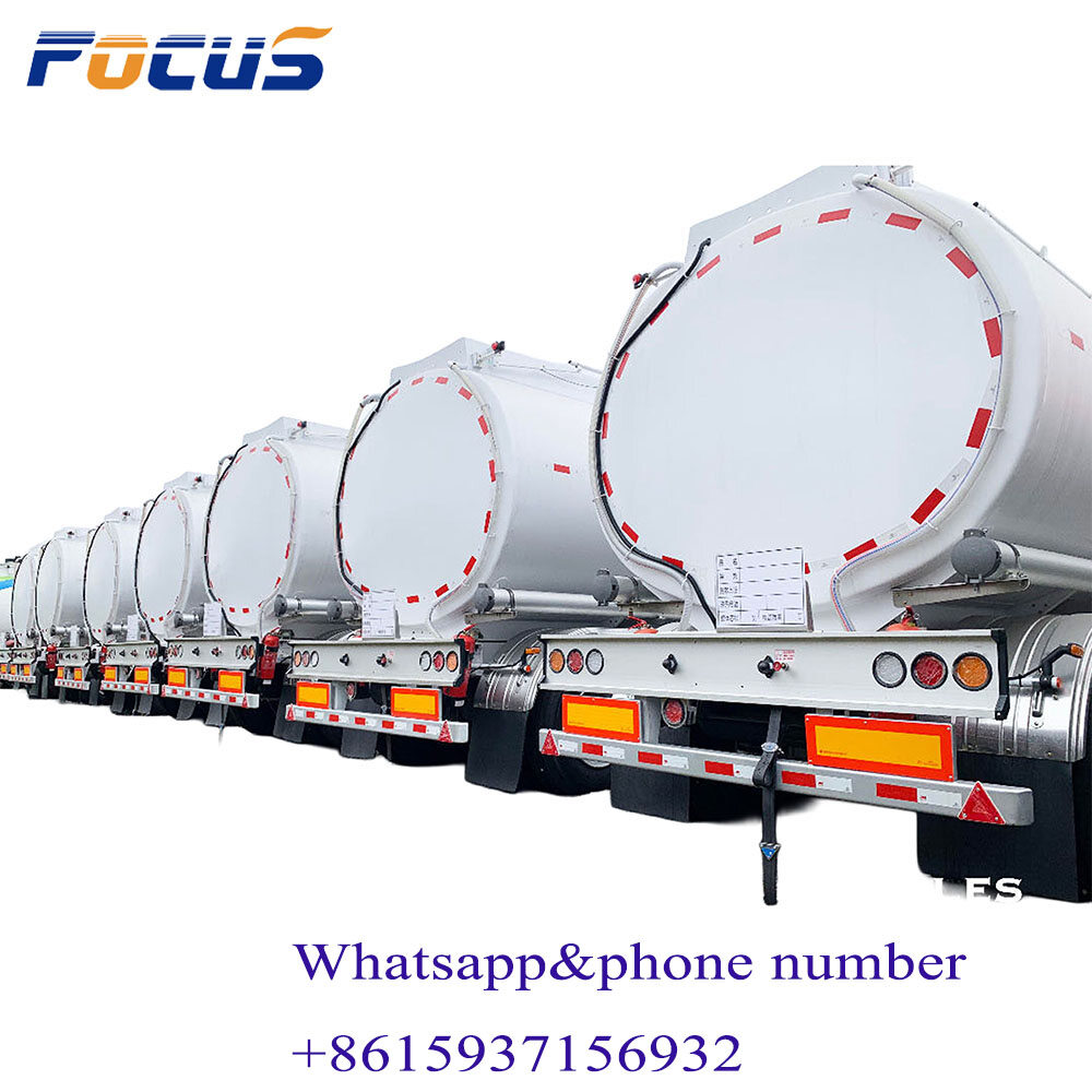 Aluminum Fuel Tank Trailer is also called Aluminum Fuel Tanker, used for carrying different liquid like fuel, petrol,diesel, etc. The volume of the fuel tankers transport semi-trailer can be customized, to reach 36,000 liters,40,000 liters, 45,000 liters, 54,000 liters, up to 90,000 liters. With different numbers of compartments(1-2-3..6 or more), and 2-3-4 axles to meet the different regulatory requirements of different countries.can be customized:Carrying for water, fuel, petrolum, crude oil, Diesel, Gasoline Fuel, asphalt, chemicals, corrosives, petro-chemicals, liquid fertilizer, caustic soda, concentrated sulfuric acid, etc. The inside of tank body is corrosion-proof treated to meet the transport demands for different kinds of liquid foods and chemical liquids.