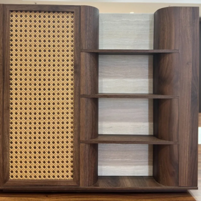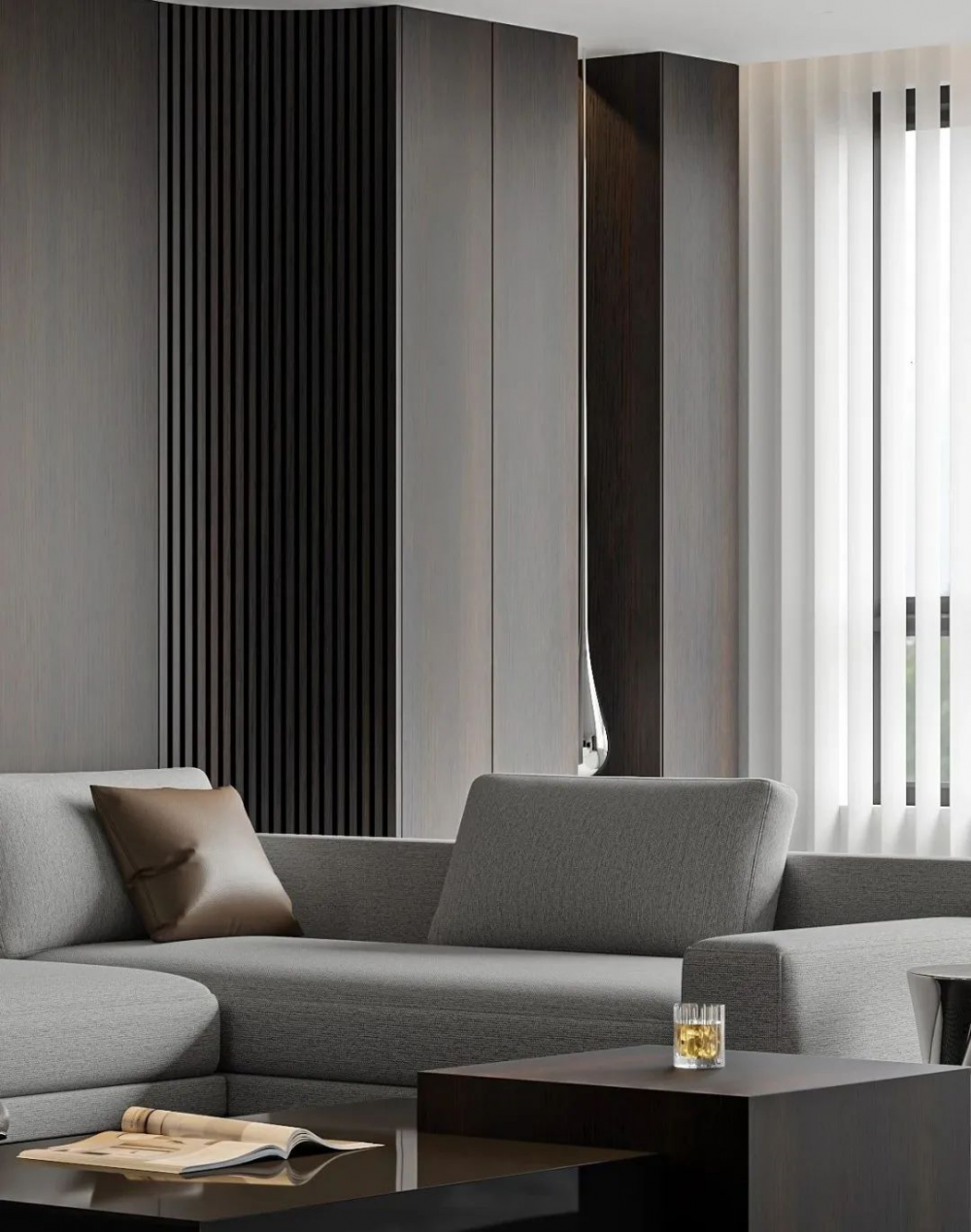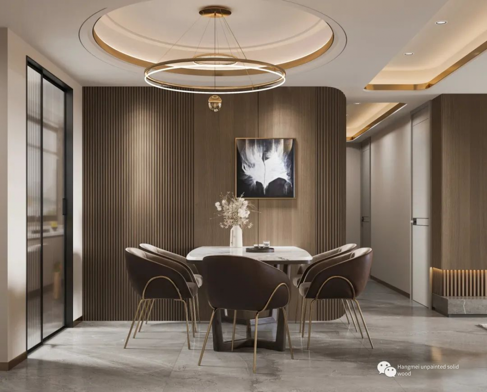 High-end Custom Arc Process Solid Wood Cladding Material - Hangmei Grille Rubber Wood Veneer Food Resin Wall Panel Large Board