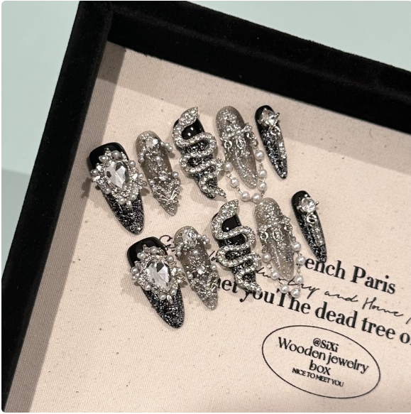 Wholesale Price Customized False Nail Dark Gothic Light Luxury for Special Occasions