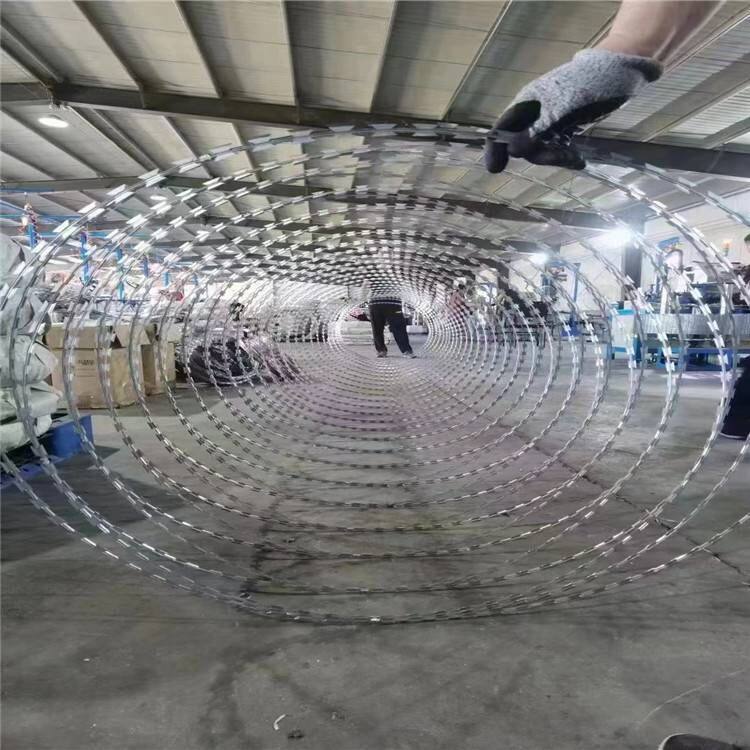 Our galvanized razor barbed wire features a robust construction with a 2.5mm wire diameter, ensuring high strength and resistance to tampering. The concertina coil design allows for flexible deployment, making it ideal for quick setup in diverse environments. Key advantages include: