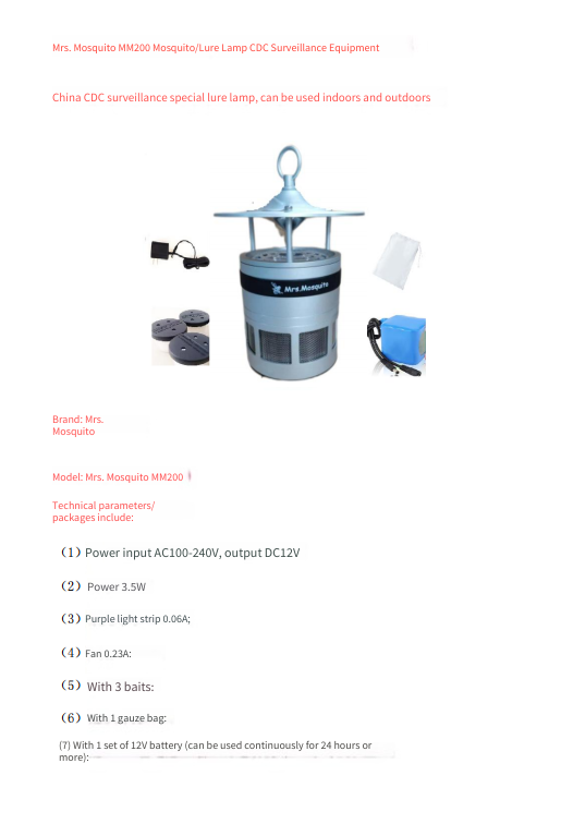 Wentaitai MM200 Mosquito/Midge Trap Lamp - Monitoring Equipment for CDC