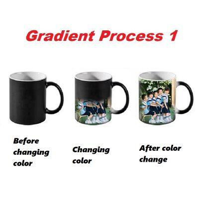 The outer layer of the cup is coated with a thermochromic material. When hot water is poured in, the coating undergoes a chemical reaction due to temperature changes, thereby altering its molecular structure and revealing pre designed patterns or colors.