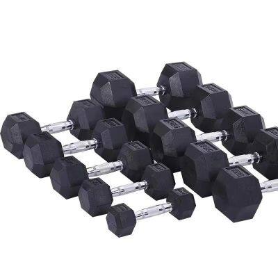 Wholesale Fitness Workout 5pounds-90Pounds Professional Gym Weight Lifting Training Rubber Hex Dumbbells