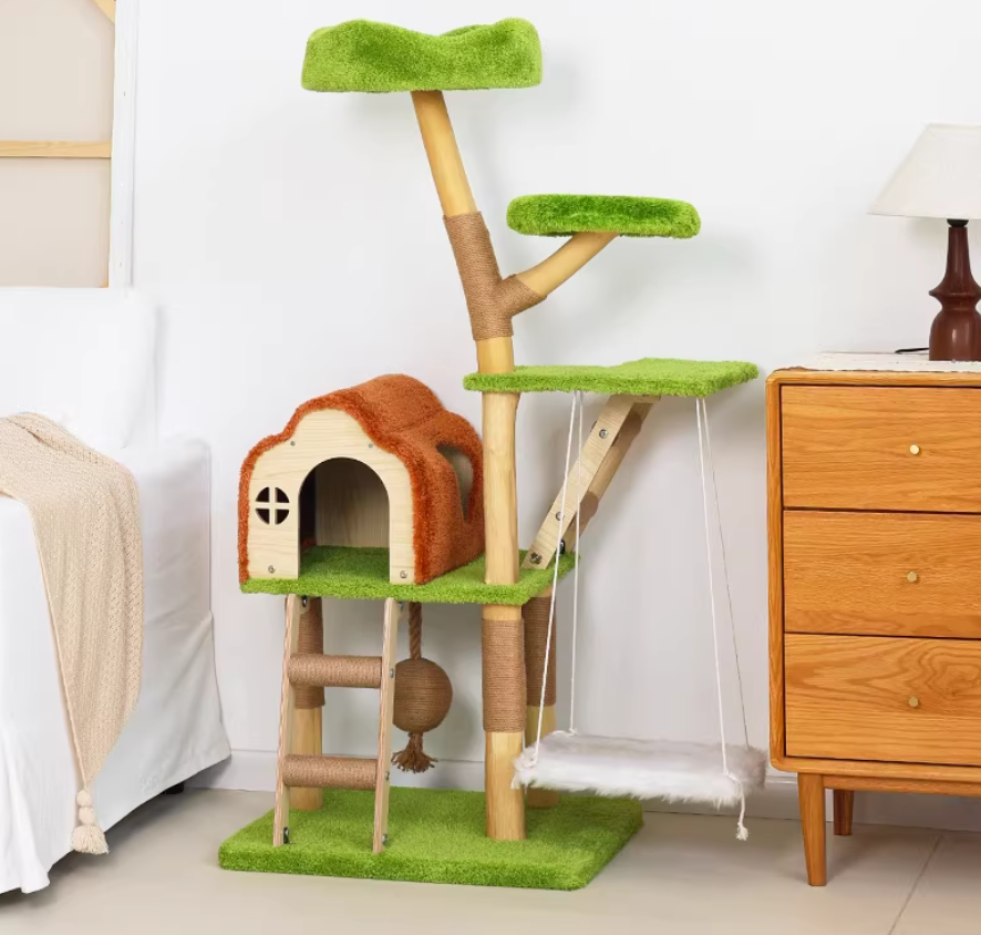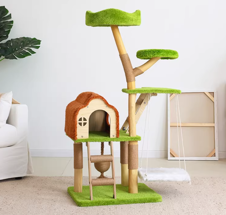 Green Grass Cat Tree With Suspended Hammock and Durable Scratching PostsNegotiableMOQ: 10 Sets
