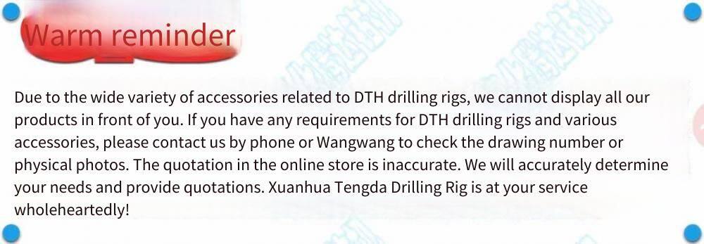 Improved component lifespan. The design principle of the medium and high-pressure DTH hammers of Zhangjiakou Xuanhua Tengda Drilling Machinery Co., Ltd. is to strive to extend the service life and reduce the maintenance workload. For example, the wear-resistant outer sleeve after hardening treatment can be reversed for use, thus extending the replacement period.