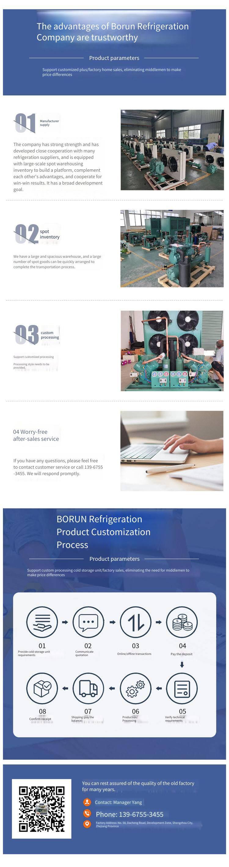 Quotation for Borun refrigeration cold storage units in quick-freezing warehouses. The 5-horsepower 4YD-5.2 unit has excellent quality, and the 2-horsepower cold storage unit also has excellent quality.