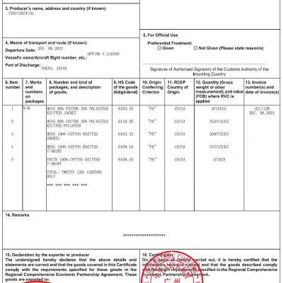Apply for Regional Economic Preferential Certificates of Origin RCEP, Japan RCEP, South Korea RCEP,US$ 40MOQ: 1 Combo
