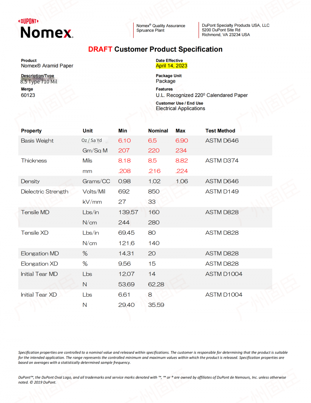 I. Basic Characteristics of Nomex710 Insulating Paper